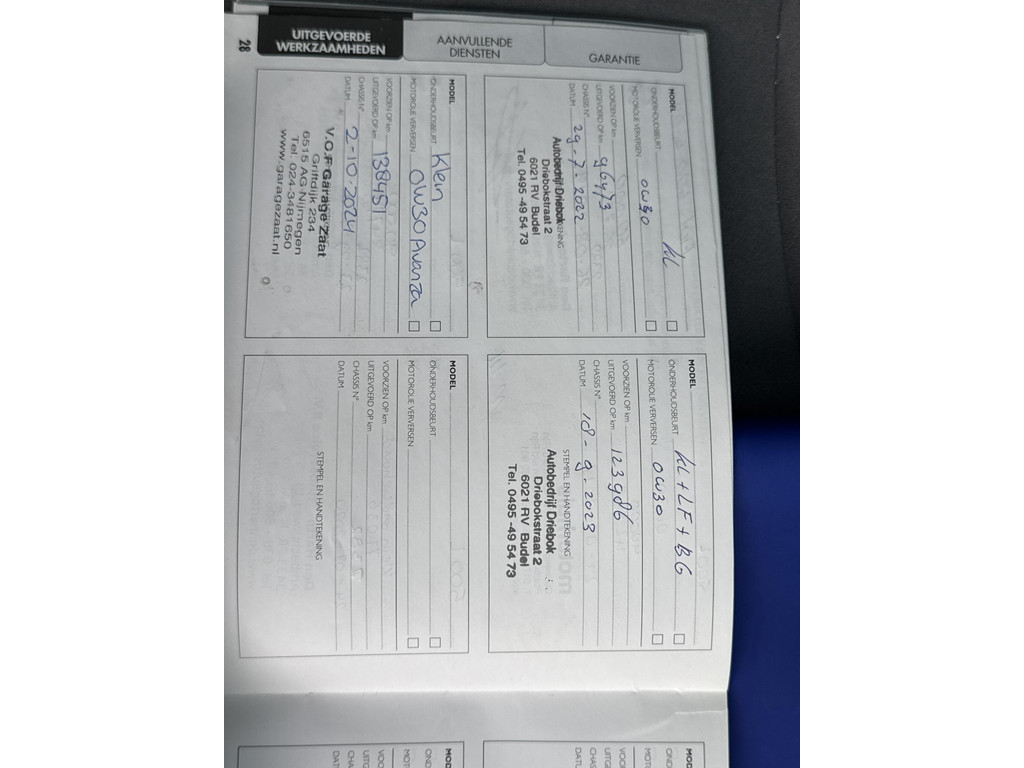 - Onderhoudsboekje aanwezig?